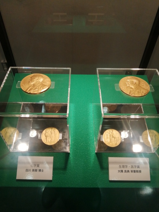 当日下午,访学团参观了东工大诺贝尔奖和其他特色成果展览馆。2016年,因“在细胞自噬机制方面的发现”,时任东京工业大学教授的大隅良典获得诺贝尔生理学或医学奖。展览馆展出了大隅良典教授的诺贝尔奖牌和相关研究介绍。虽然生命科学并非访学团成员的专业,但是细胞自噬机制与生物力学有关,其研究也需要应用到机械学的知识。第一次看到真正的诺贝尔奖牌,大家的激动兴奋之情溢于言表,诺贝尔奖获得者的研究也极大激励了大家对科学的兴趣。展览馆还展出了东工大在地震救援机器人、抗震房屋结构创新设计、智能工厂服务机器人等方面的特色研究成果,给大家留下了深刻印象。