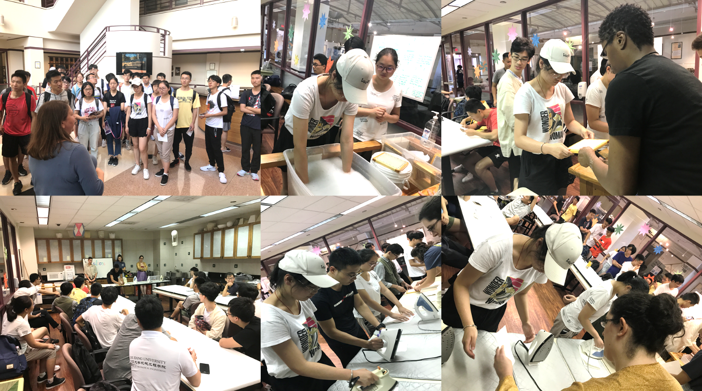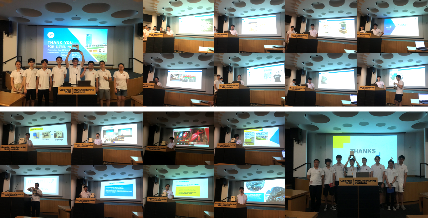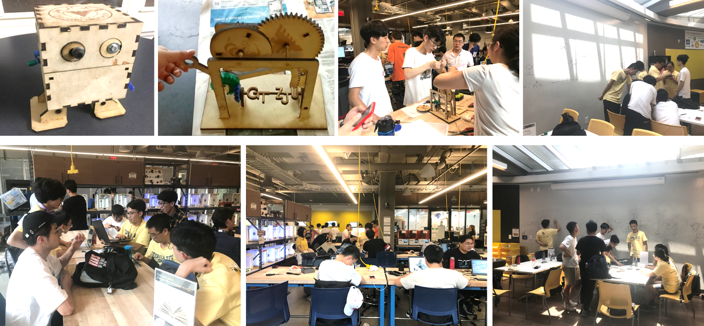 交流最后一周为同学们安排了两天的课程实践时间,同学们利用学生创新中心(ME Invention Studio)的仪器设备与材料设计制造实物产品并进行最后的成果展示。除了安排的实践时间,同学们更是利用业余时间进行方案设计讨论,以期能够在有限的时间内做出最好的展示成果。同学们结合自身专业知识以及创新中心实验条件,融合浙江大学与佐治亚理工学院元素,分别设计制造了自己小组的作品。