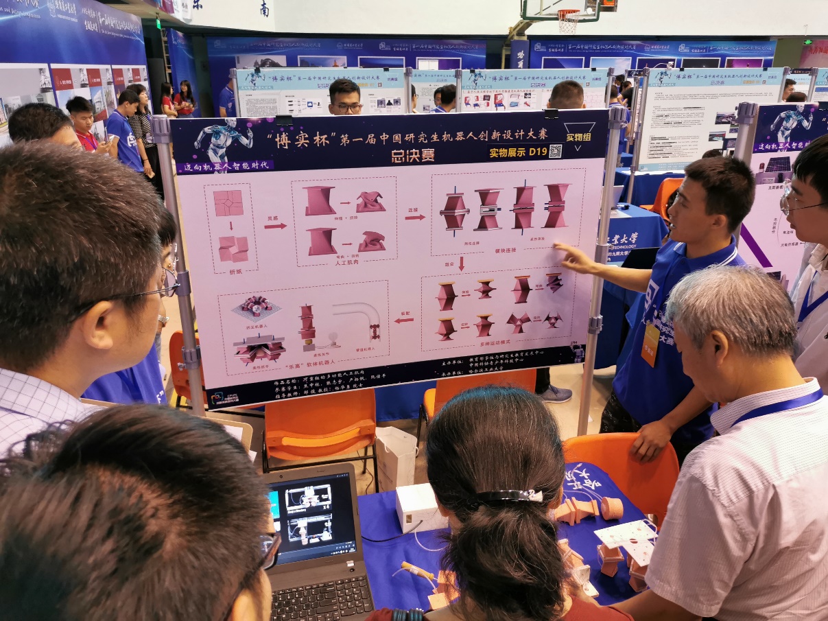由邹俊老师指导,焦中栋、张志宇等同学的作品《一种可重组的多功能人工肌肉》荣获全国总决赛一等奖。团队成员从折纸获得启发,设计了能够自由重组以适应不同工况环境的软体机器人,并通过负压驱动保证了机器人在损伤情况下的工作能力。