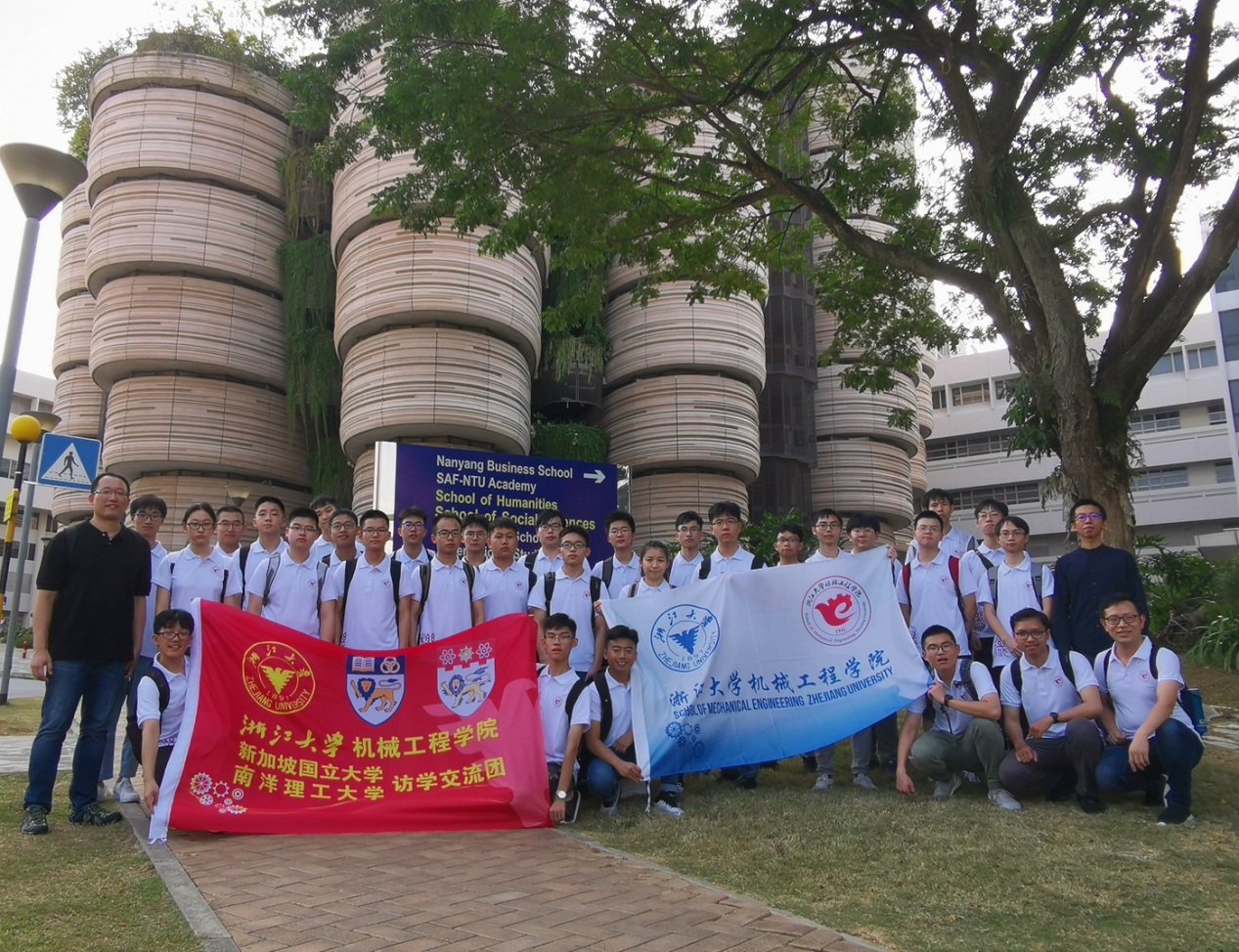 为培养学生国际视野,了解机械前沿发展,加强我校与其他国际知名院校的交流合作,2019年8月12日,由曹彦鹏、闫小龙两位老师带队,学院30名不同年级的本科生一起,从杭州萧山国际机场奔赴新加坡开展为期7天的访学交流活动。期间,团队一行依次参观走访了新加坡南洋理工大学(NTU)、新加坡科技研究局(Astar)、新加坡国立大学(NUS),新加坡国家博物馆等。