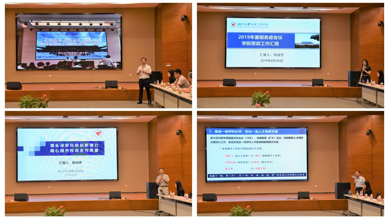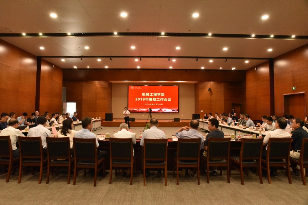 2019年8月30日,机械工程学院暑期工作会议在杭州艾美依航空制造装备公司园区综合楼报告厅成功召开。学院全体领导班子成员、全体教授、学校部分部处领导、机关人员等70余人参加了会议。围绕学院“双一流”建设情况及进一步建设路线进行了深入广泛的探讨,研究谋划学院当前及今后一段时期的工作重点。会议由学院党委书记梅德庆主持。