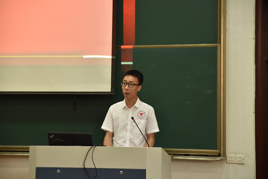 紧接着,老生代表李俊杰上台发言,李俊杰借以施一公的八字寄语“求知、探索、厚德、担当”为主题做了发言。他主要讲述了蒋克涛老师以及林俊德院士的故事,鼓励同学们在研究生期间艰苦奋斗、乐于奉献。最后是新生代表金钟博宇同学发言:新的阶段,新的旅程,让我们在机械大家庭中携手共进,不断探索,成为一名有知识、有品德、有担当的机械人。