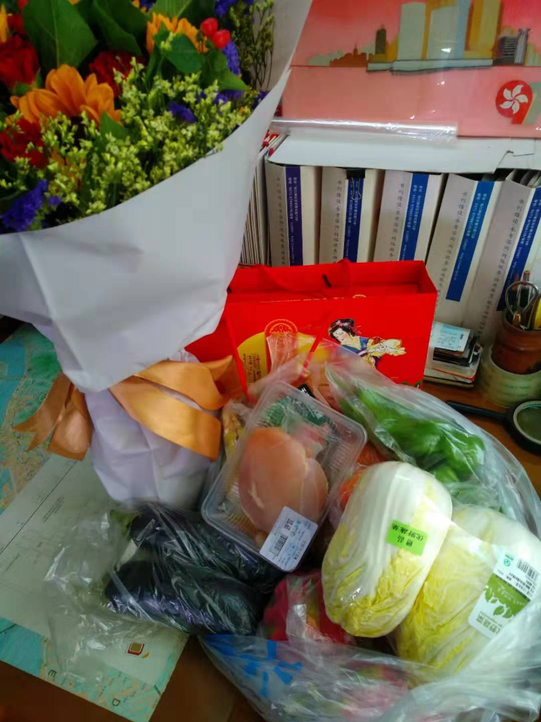 同志们为蒋老师带去了鲜花和月饼,蒋老师年事已高,又住在六楼没有电梯,所以同学们每次都会为蒋老师买一些蔬菜水果。庆幸的是,蒋老师那栋楼的电梯已经修好了,马上就能交付使用了。