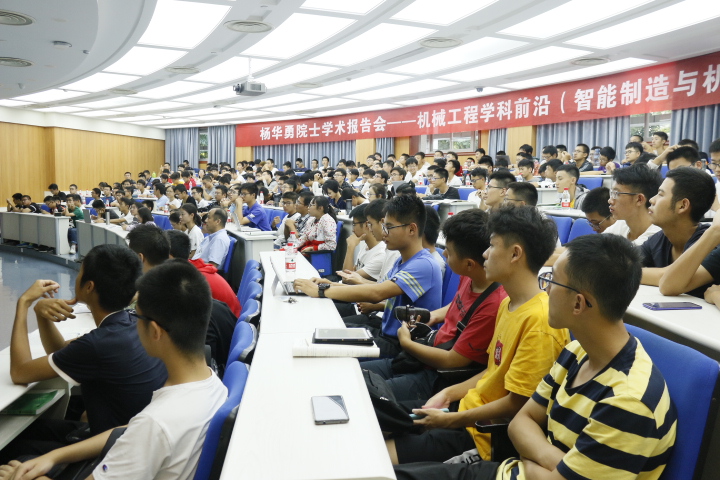 9月22日下午,机械工程学院院长杨华勇院士主讲的“机械工程学科前沿(智能制造与机器人)发展现状与趋势”报告在紫金港校区蒙民伟楼139报告厅如期举行,报告由机械工程学院副院长刘振宇教授主持,19级机材大类本科生参加讲座。