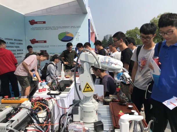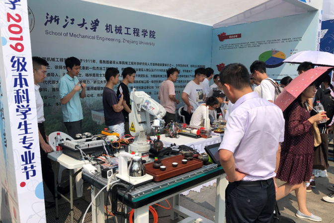 学院展位前场面火爆,众多2019级的新生前来观摩机器人并咨询机械学科的课程体系,专业负责人纪杨建老师、谢金老师及优秀的学长学姐耐心为新生答疑解惑,帮助他们更好地了解机械工程专业。