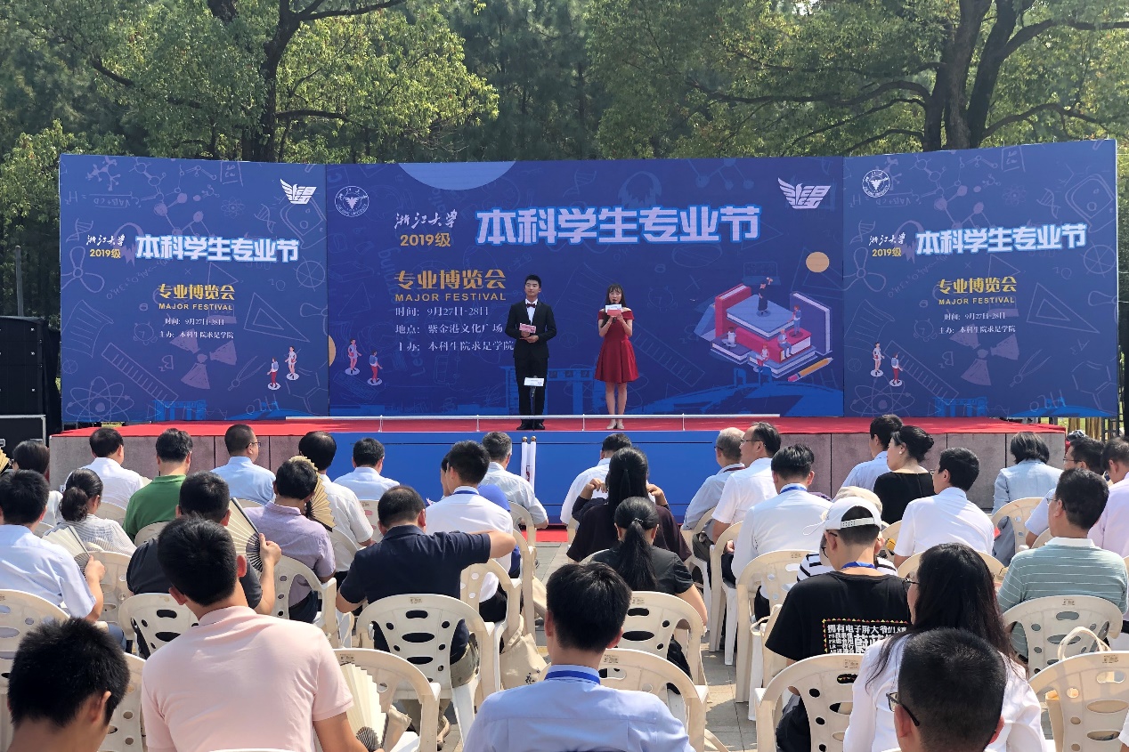 9月27日下午,2019级本科学生专业节启动仪式暨专业博览会在紫金港校区文化广场举行,机械工程学院党委副书记项淑芳老师作为学院领导参加了启动仪式,学院专业负责人顾大强、纪杨建、谢金、班主任曲薇葳、段桂芳、本科教学科钟瑞明、李宏庆、团委王芳官等八位老师和高年级优秀学长参加了此次活动。