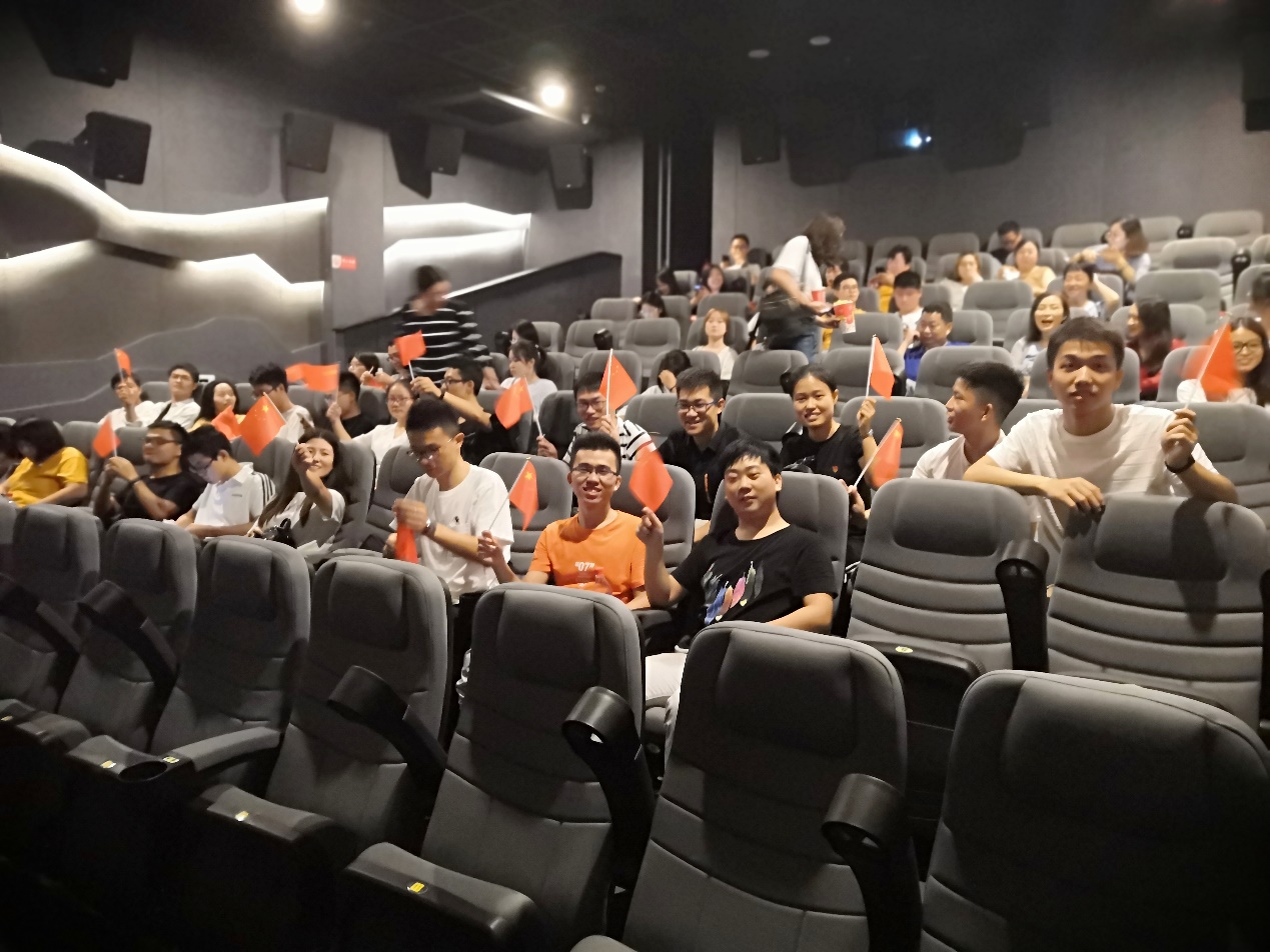 拍完照之后,我们步行前往电影院观影,入场后学长给大家发了小红旗,大家挥舞着小红旗,让3号厅变成了红色的海洋。