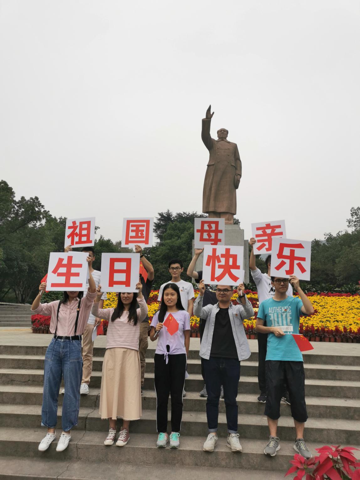 为了庆祝中华人民共和国成立70周年,机电博二党支部于2019年10月11日下午在浙江大学玉泉校区毛主席像前共同为祖国母亲歌唱。