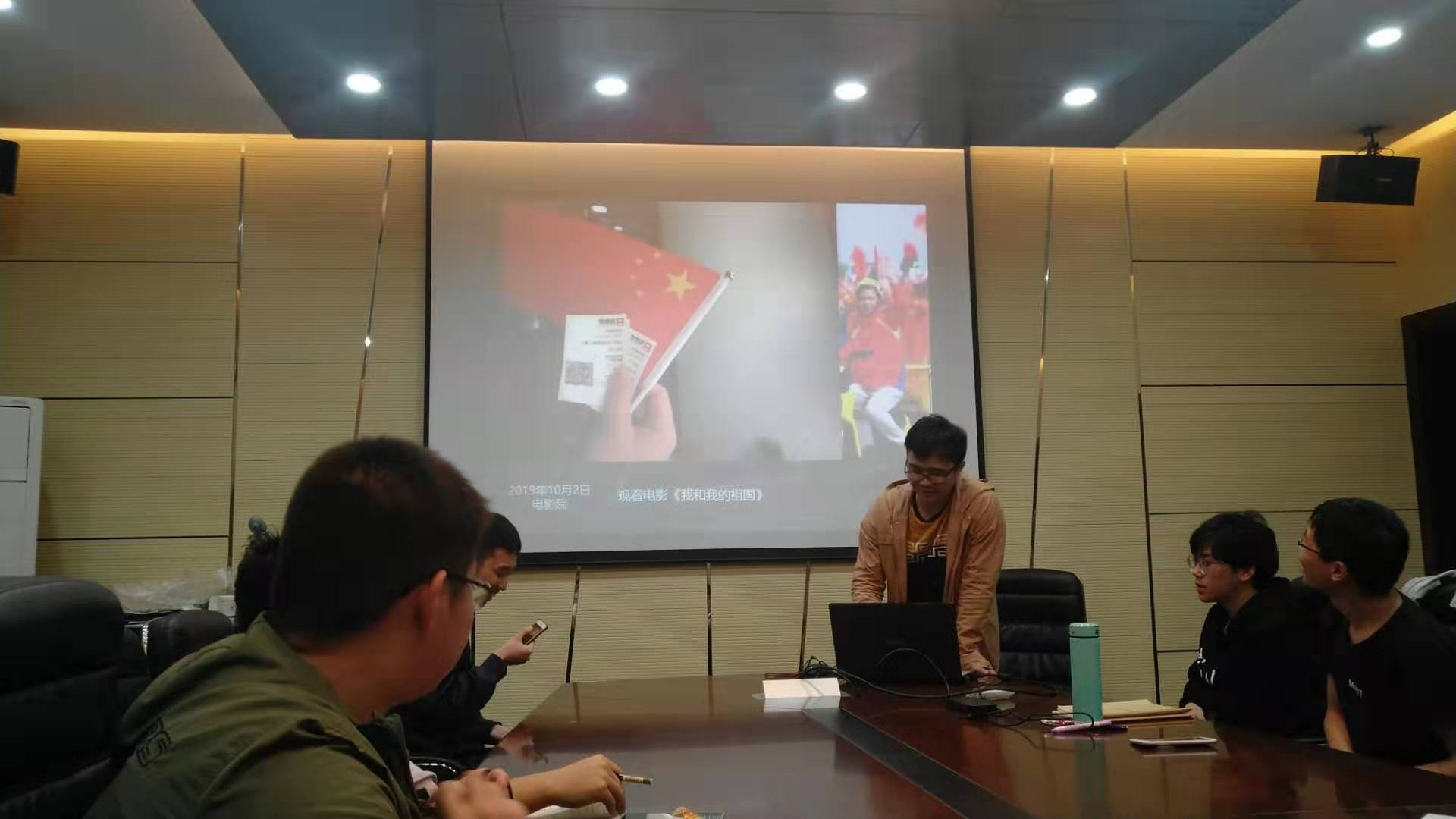 深入贯彻习近平新时代中国特色社会主义思想,学习习近平总书记在新中国成立70周年庆祝大会上的重要讲话精神,增强对学生党员的理想信念教育和价值观引领,引导学生党员思考祖国发展与个人命运的深刻关联,机电本科党支部于2019年10月16日(星期三)晚9点在教一411会议室举办了“我和我的祖国·小国旗漫游记”主题党日活动,支部全体党员和预备党员参加,支部书记陈雷主持活动。活动上,与会党员展示着一张又一张自己在国庆假期所拍摄的带有小国旗的照片,讲述这张照片背后的故事与自己的所思所想。