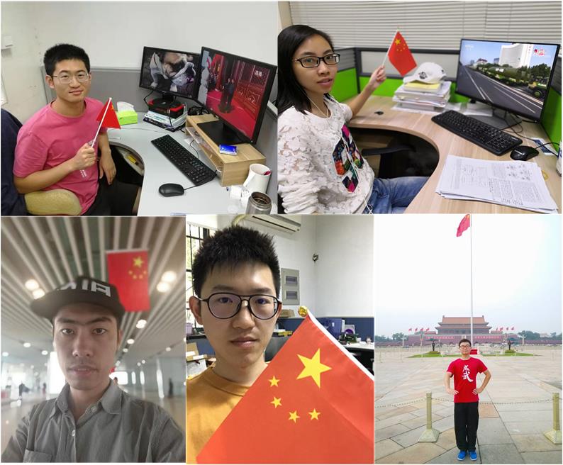 10月1日上午,中华人民共和国在北京天安门广场以一场盛大阅兵迎来了70岁生日。十里长街,铁流滚滚,浩荡而来;秋日长空,战机翱翔,傲视苍穹。宏伟的天安门广场见证着大阅兵中一个个精彩的瞬间。浙江大学机械工程学院机制博一党支部全体党员满怀激动之情,自发组织大阅兵观礼活动,并在纷纷各地留下了与国旗的合影。