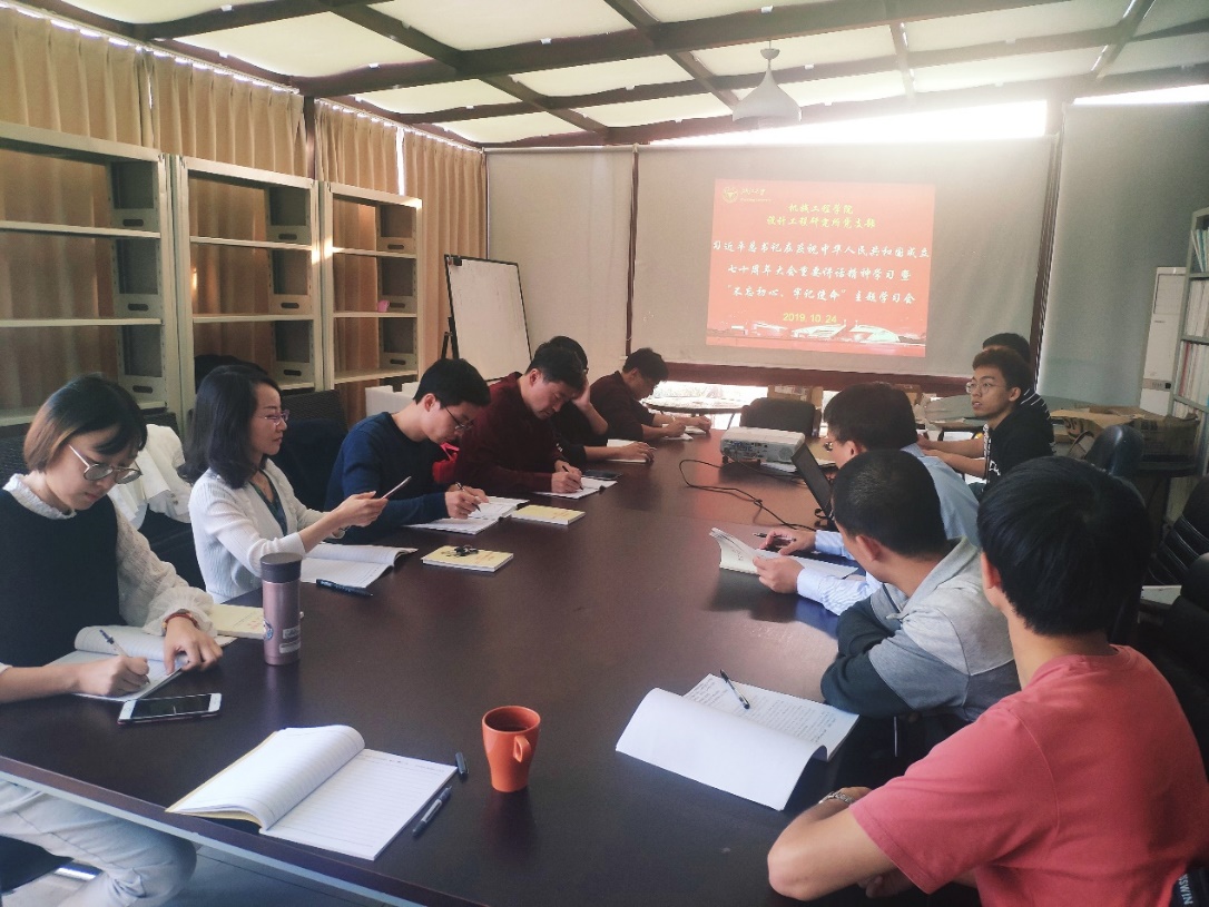 2019年10月24日下午,正值“不忘初心,牢记使命”学习活动开展得如火如荼之际,我支部联合设计工程教工支部在第一教学楼4楼412室举行联合党日学习活动。教工支部书记冯毅雄教授、教工支部各位党员老师、我支部全体党员参加了本次活动。活动由冯毅雄教授和张斌同志共同主持。