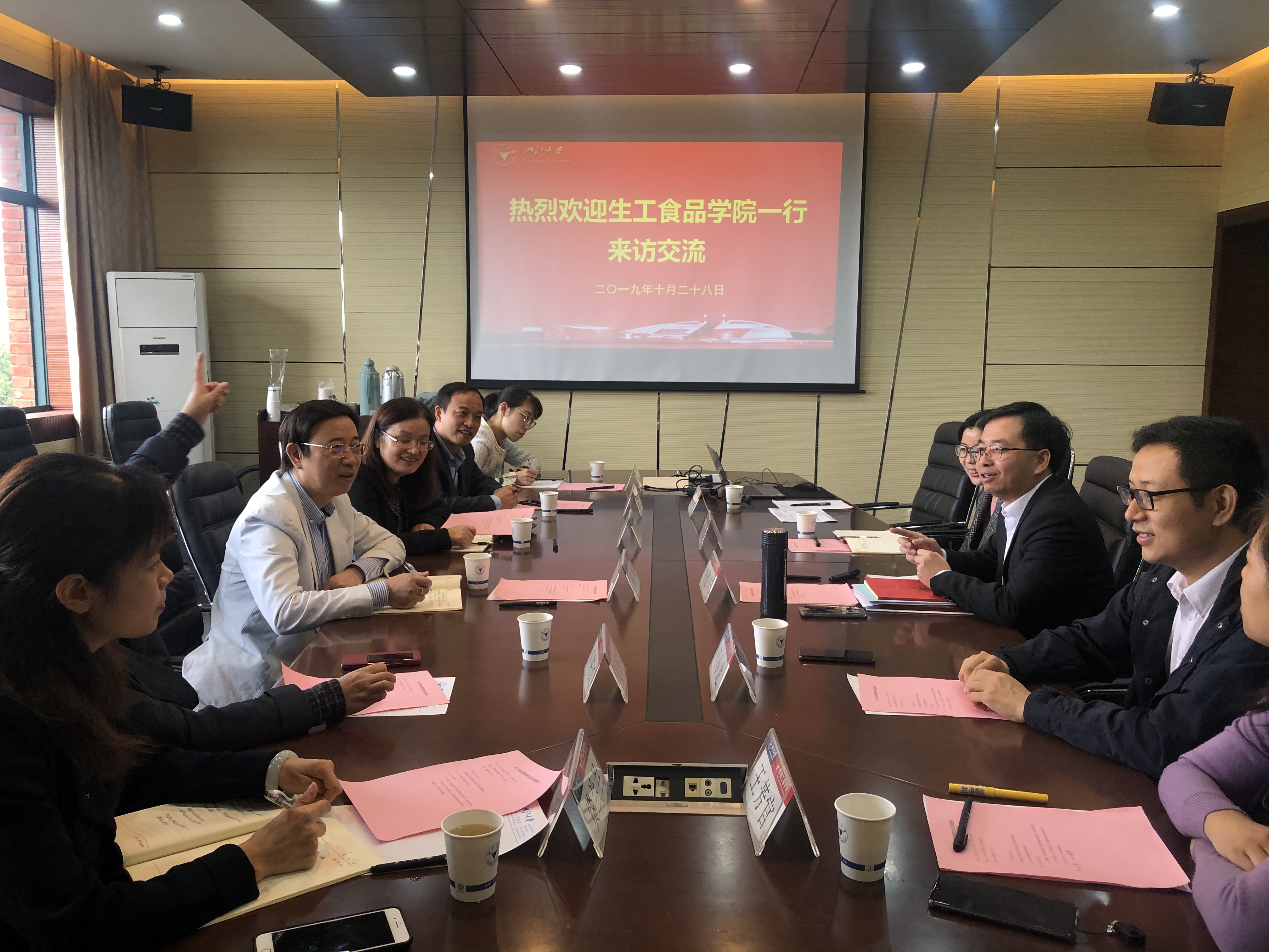 10月28日上午,生工食品学院何勇院长、王晓燕书记带队,副院长刘东红、副院长徐惠荣、副书记费兰兰等一行6人来我院调研交流。学院党委书记梅德庆、副书记项淑芳等接待来宾,双方进行了深入交流。梅德庆书记首先代表学院对生工食品学院一行表示欢迎,并围绕学院党建情况、主题教育情况和“双一流”进展情况等进行了详细的介绍。何勇院长、王晓燕书记等对我院的热情接待表示感谢,对我院的党建、科研等高度赞赏,并希望双方进一步加强交流合作。