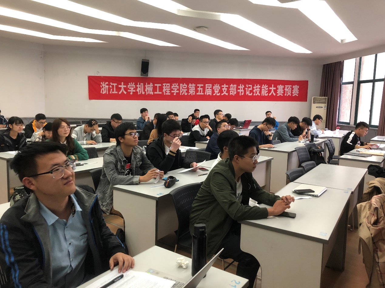 2019年10月27日14:30,大赛在浙江大学玉泉校区教七306如期举行。机械工程学院团委书记王芳官老师、团委副书记金娟霞老师出席本次大赛,参加本次技能大赛的还有院全体党支部书记、各支部党员及党建中心骨干,大赛由党员素质发展中心主任彭思达主持。