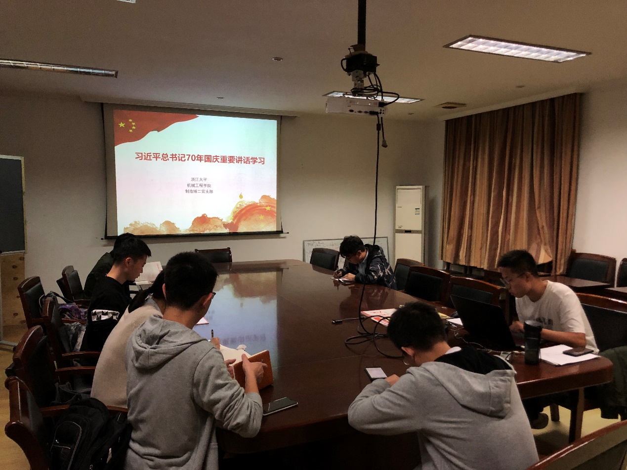 为贯彻落实机械工程学院党总支要求,深入学习习近平总书记70年国庆重要讲话及“七十年光辉历程与伟大成就”,贯彻落实学习习近平新时代中国特色社会主义思想,2019年10月26日,制造博二党支部在小白楼3楼会议室开展了组织生活会,组织支部成员进行学习和讨论。