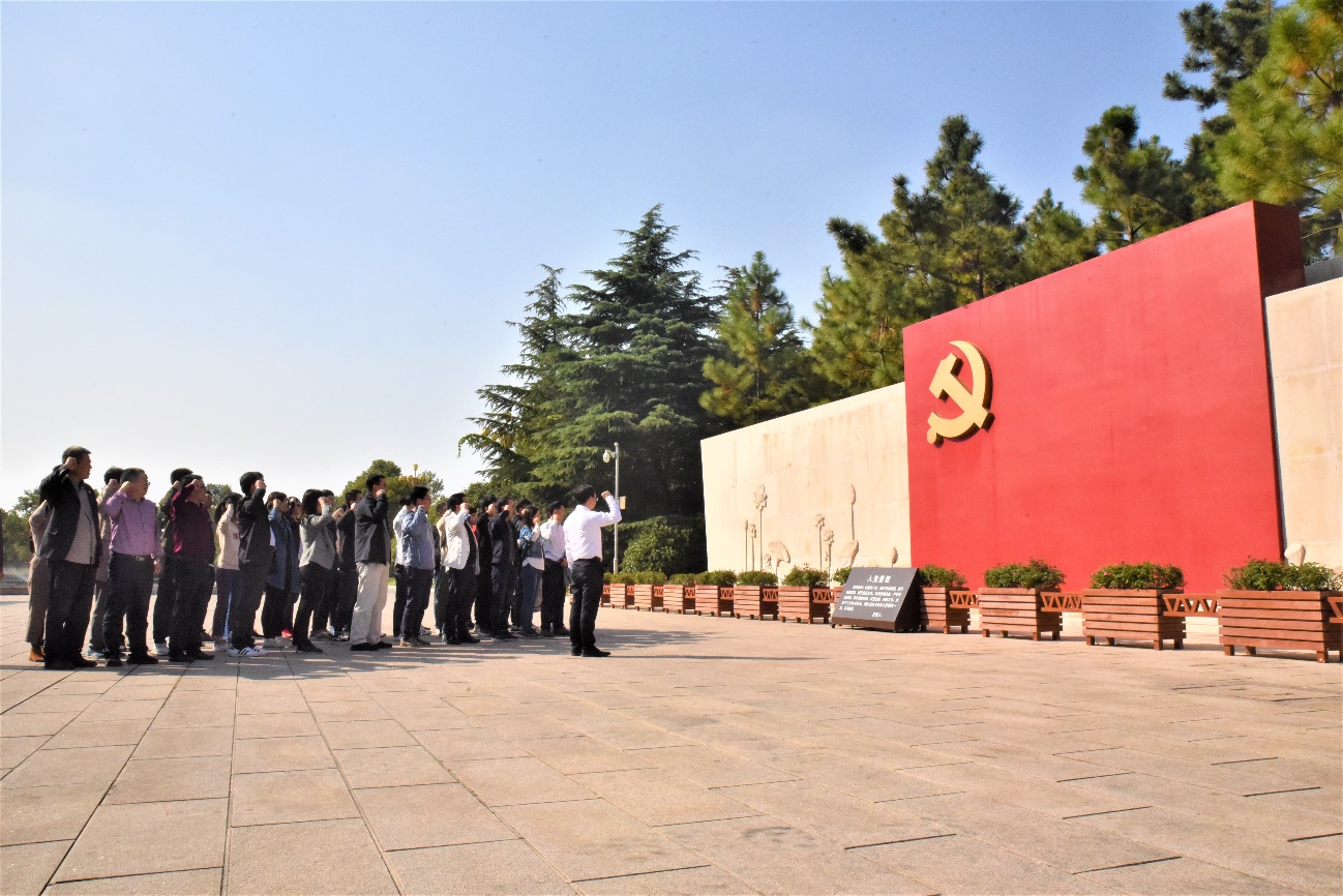 来到纪念馆北广场宣誓墙,在这里,全体师生庄严肃穆的重温了入党誓词。在梅书记的领誓下,庄严的誓词宣读声从老师们和同学们的口中铿锵崩出。誓词回响在蓝天白云、青山绿水间,也回响在宣誓人心房胸怀间。