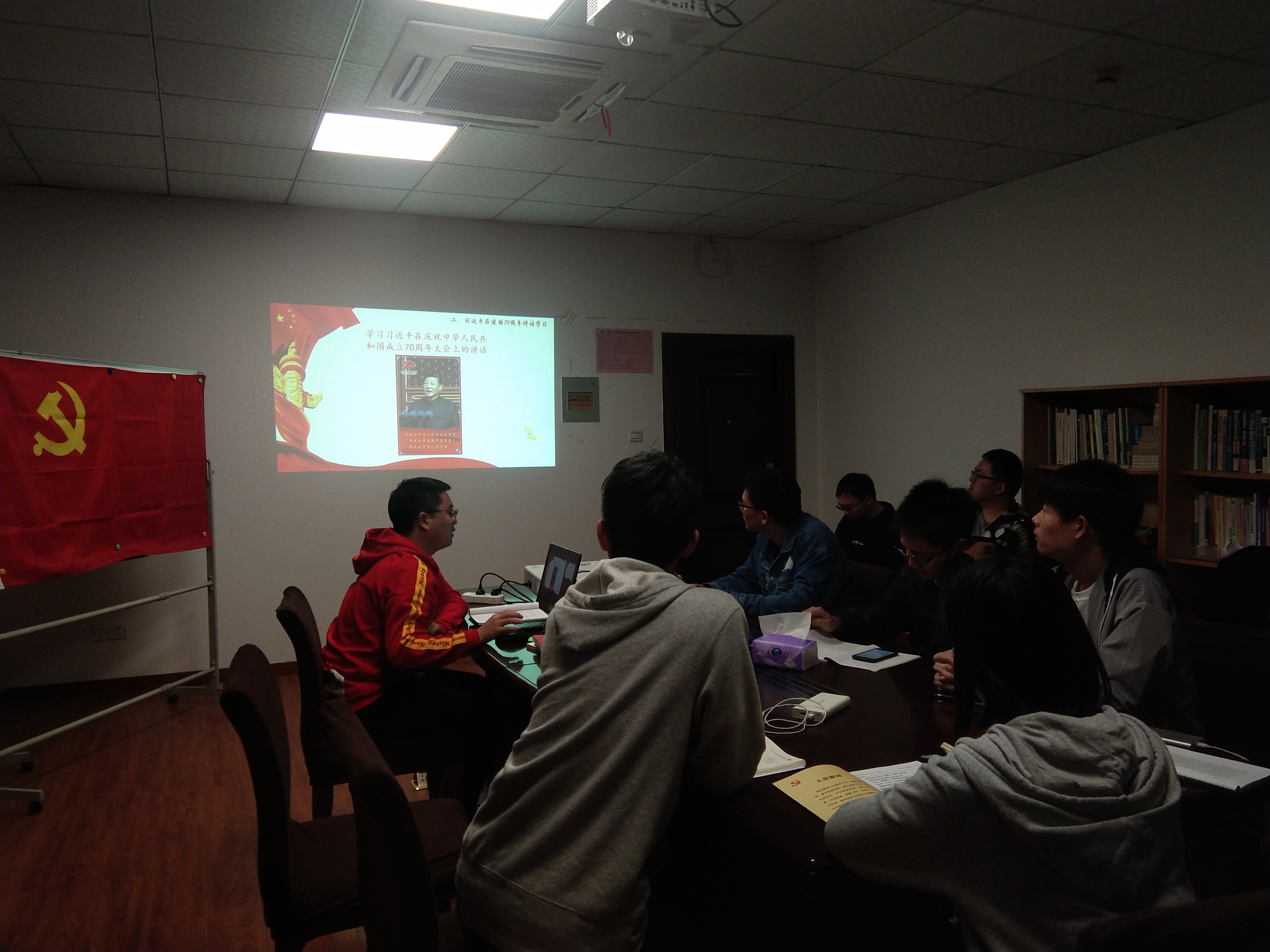 随后,党支部副书记向佳欣同志组织支部成员对习近平在庆祝中华人民共和国成立70周年大会上的讲话进行学习,与会党员就该讲话结合自身感悟进行了交流分享。