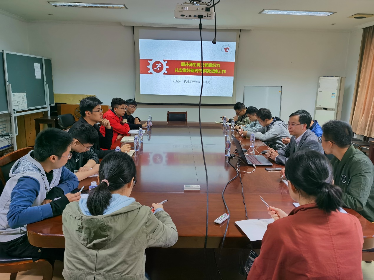 2019年11月13日下午四时,在白楼三楼会议室,制造博二党支部“结对共建”教师梅德庆书记对支部党员开展专题党课讲解,参会人员有浙江大学机械工程学院制造技术及装备自动化研究所博士研究生第二党支部书记魏燕定老师以及支部各位党员。