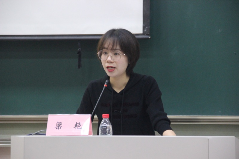 图注:校团委副书记梁艳老师讲课