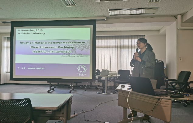11月21日,访学团来到东北大学青叶山校区开展交流。上午,东北大学大学院工学部机械系高伟教授热情接待了访学团一行。高伟教授向访学团简单介绍了东北大学的相关情况,并对我浙学子提出了殷切期望。接下来,“日本东北大学-浙江大学博士研究生先进制造研讨会”在东北大学举行。浙江大学机械工程学院的5位博士研究生作为访学团的代表从自己研究项目为切入点,展示了浙大学子的风貌。东北大学工学部机械系不同实验室的4位博士研究生也详细地展示了自己的研究课题。研讨会期间,同学们都对自己感兴趣的研究点积极提问,交流热切深入,使大家对双方的研究方向和成果都有了一个初步的了解。