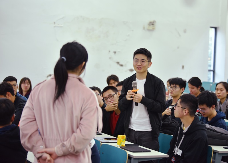 接下来,由机械电子工程17级的韩翔宇同学为同学们分享了自己的专业学习心得,他从机械电子重要的基础课程,到自己SRTP和机械设计竞赛过程中,所遇困难与解决方法,把自己的每一年的计划安排分享给学弟学妹们听。海宁国际校区UIUC的陈玻尔同学,为我们介绍了浙江大学伊利诺伊香槟分校联合学院的培养模式,以及大一大二的机械专业课程体系安排,及存在的困惑。他们每学期所要求的机电小车循线、识别障碍物项目,以及具有特色的essay任务。机械工程17级的陈佳威同学介绍了商赛和创业之于机械学子的作用,以及他自己作为一名机械ITPer,未来的职业生涯规划。本部与海宁校区的同学针对机械工程专业展开了个人作息、培养体系、科研竞赛等方面展开了交流与研讨,受益颇丰。