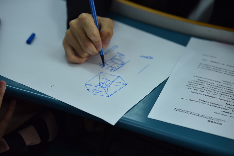 每位同学在组内进行简单的自我介绍后,开始了时长为30分钟的破冰机械设计竞赛,试题来自于浙江大学机械设计竞赛(2017年、2019年),主要是设计为老年人服务的智能家居,以及果蔬摘取机械装置,5组同学开始紧张激烈的讨论与设计。他们用自己掌握的机械设计知识,以及针对试题的创新想法,都设计出了属于自己团队的机械产品。在接下来5分钟的展示分享环节时,我们看到了极具创意的洗澡机,结构设计严谨完善的荔枝摘取背篓,自动定位的老人用床。在投票环节,王教授对各具特色的机械设计产品进行了创新性、实用性方面的点评。最后,我们投出了最佳创意奖、最具实用性奖、最高科技奖,同时为三支队伍颁发了奖品。