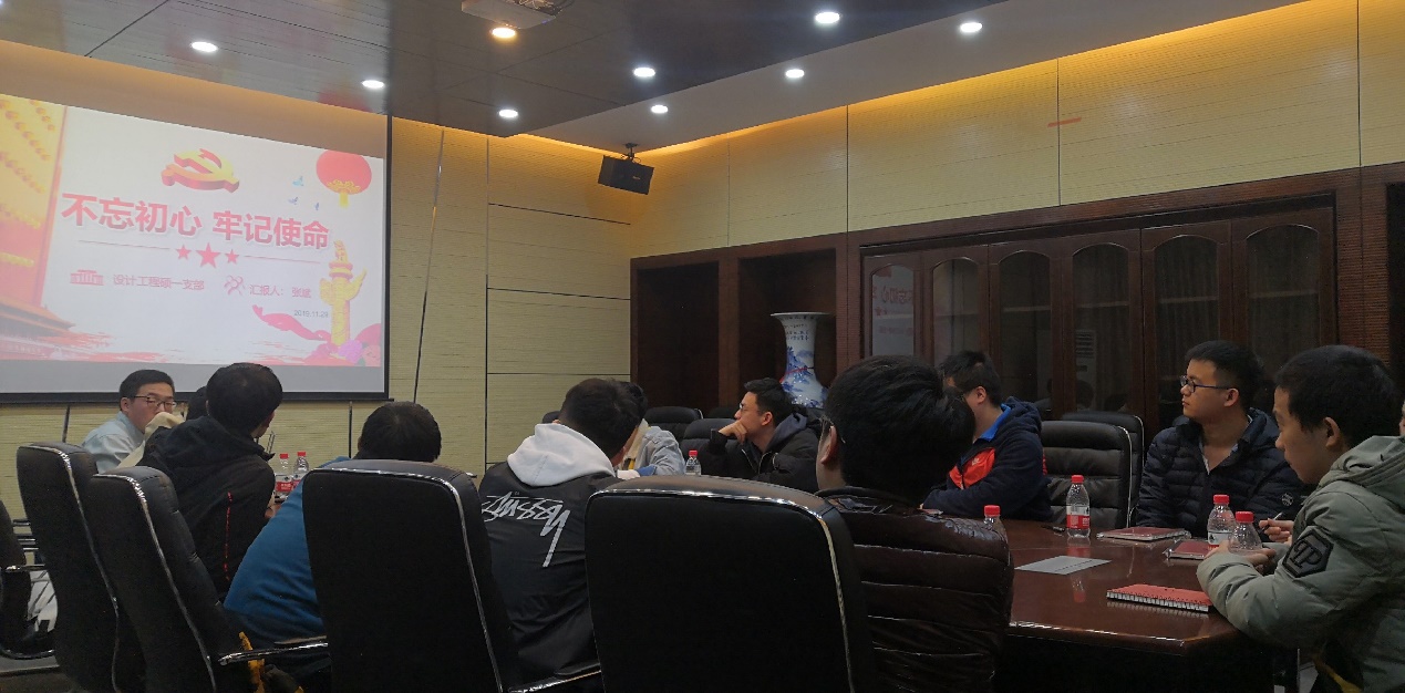 2019年11月29日晚9点,设计工程研究所硕士一支部于教一411会议室隆重召开“不忘初心、牢记使命”主题教育专题民主生活会及2019年度支部党员评议会。会议由支部副书记张斌同志主持,支部所属党员、预备党员、入党积极分子等全员参加会议。