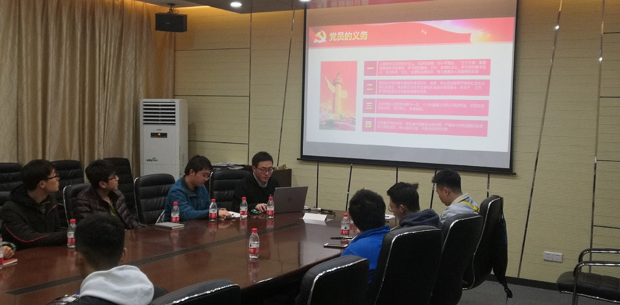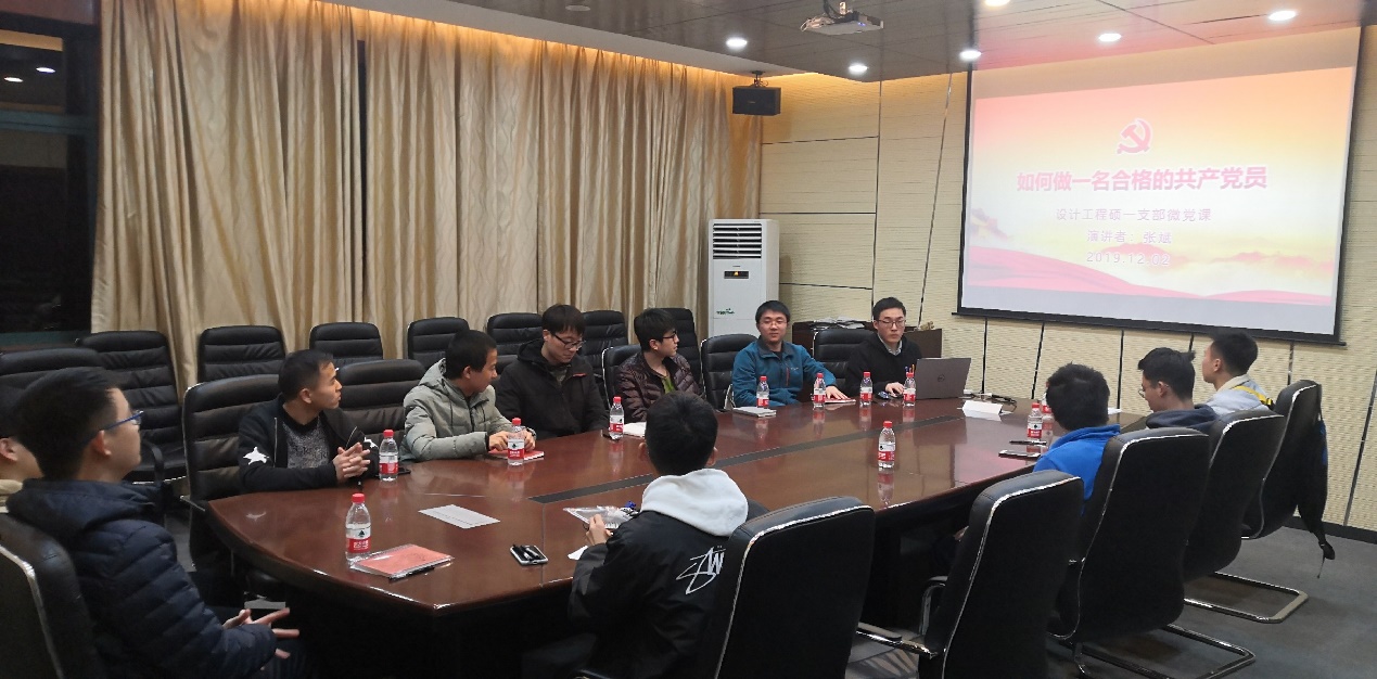 2019年12月2日晚,为深入学习贯彻宣贯党的十九大四中全会精神,落实好“三会一课”制度,扎实推进“两学一做”学习教育,设计工程硕士一支部在教一411会议室举办主题为“如何做一名合格的共产党员”的微党课活动。本次微党课由支部副书记张斌同志主讲,党支部全体党员、预备党员、入党积极分子等共计14人参加活动。