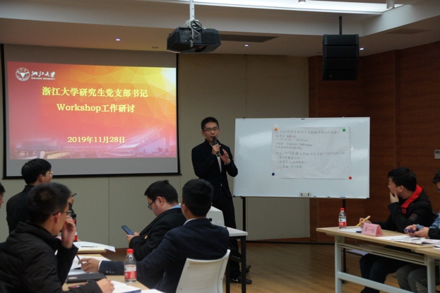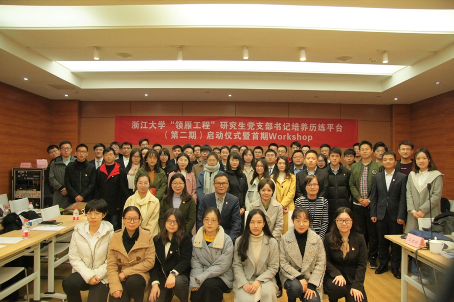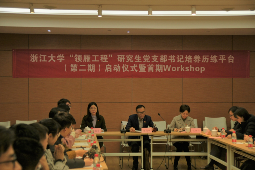 为深入推进“不忘初心、牢记使命”主题教育,深入学习贯彻习近平新时代中国特色社会主义思想和党的十九大精神,进一步提升我校研究生党支部书记的素质和能力,2019年11月28日,由浙江大学党委研究生工作部主办、机械工程学院承办的浙江大学“领雁工程”研究生党支部书记培养历练平台(第二期)启动仪式暨首期研究生党支部书记Workshop在浙江大学紫金港校区校友楼西溪厅隆重举行。