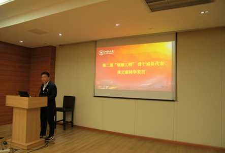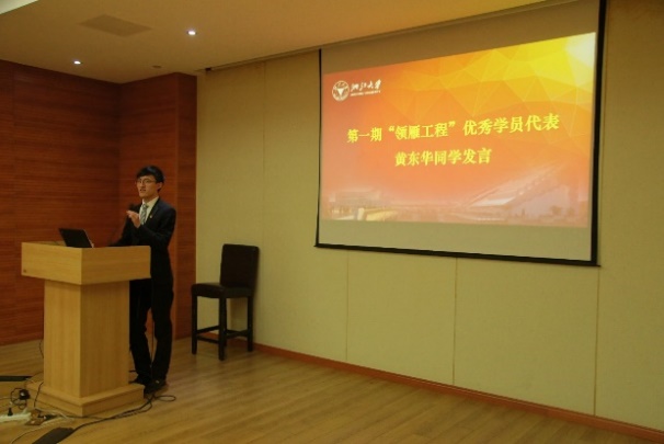 图注:第一期“领雁工程”黄东华同学和骨干成员代表崔文康同学分别发言