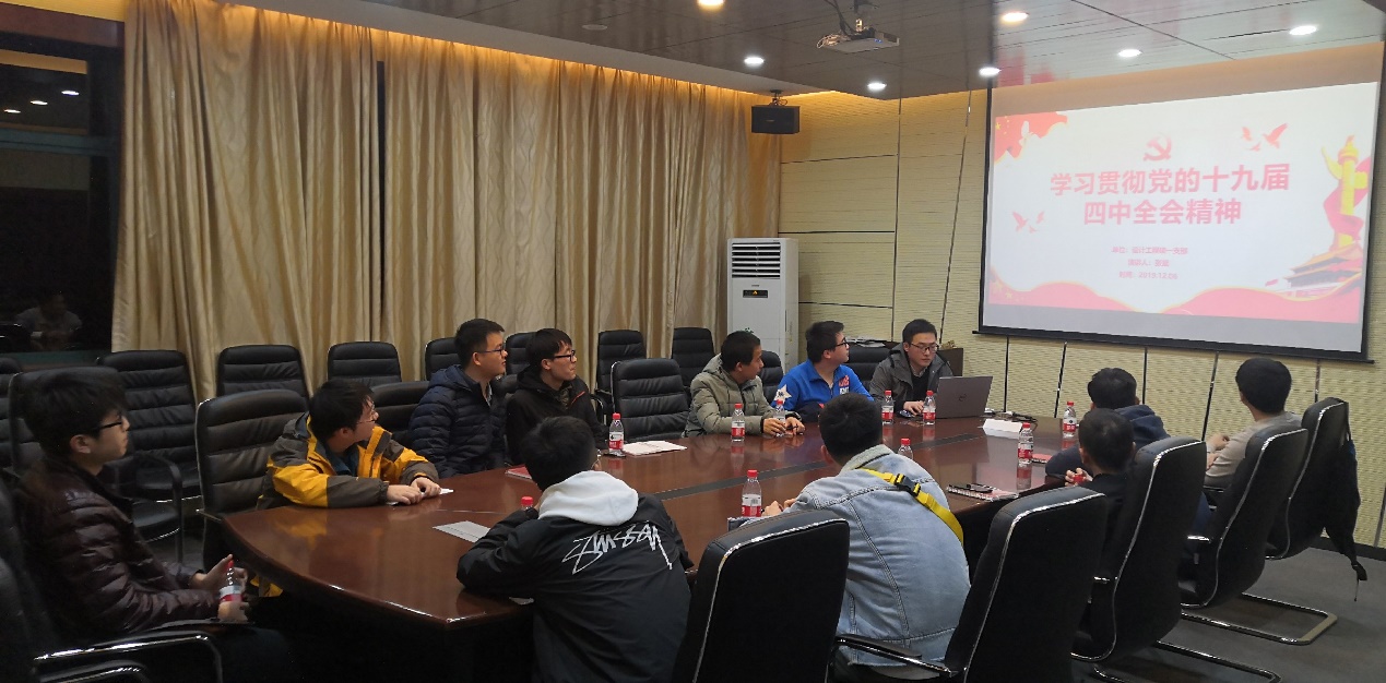 为了更加全面深刻理解党的十九届四中全会精神,加强党员的思想政治建设,2019年12月6日晚,设计工程硕一支部组织支部成员在教一411会议室开展了集体学习十九届四中全会精神活动。本次学习活动由支部副书记张斌主持,支部全体党员、入党积极分子参加。