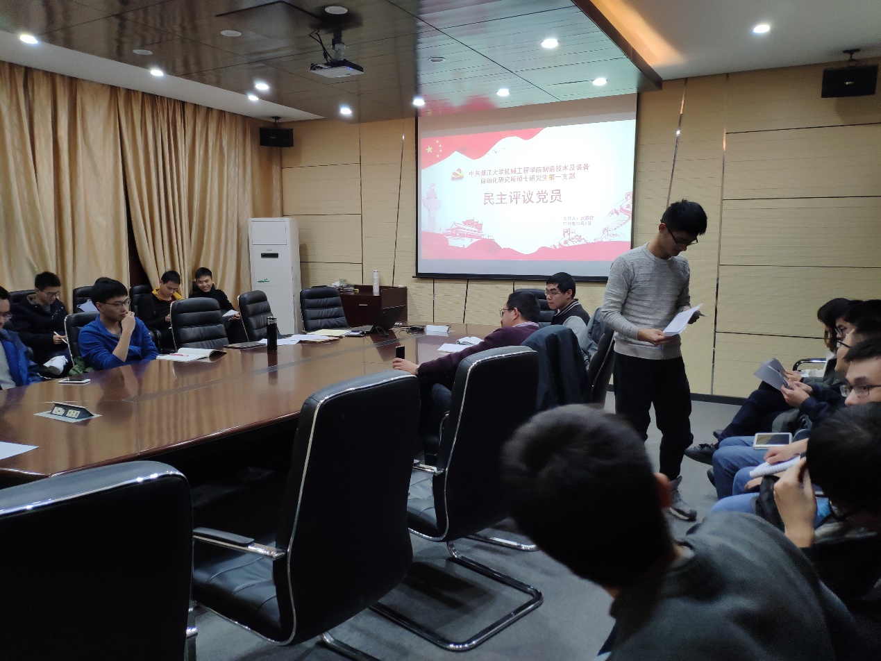 为进一步提升党员党性,树立党员正确的世界观,全面提高党员队伍的整体素质,增强党员之间的沟通交流,积极开展党员的批评与自我批评。机械学院制造硕士第一党支部于2019年12月9日开展组织生活会,开展了民主评议党员活动。支部书记贺永老师和制造硕一党员参加了本次活动,会议由支部副书记武鹏程同志主持。