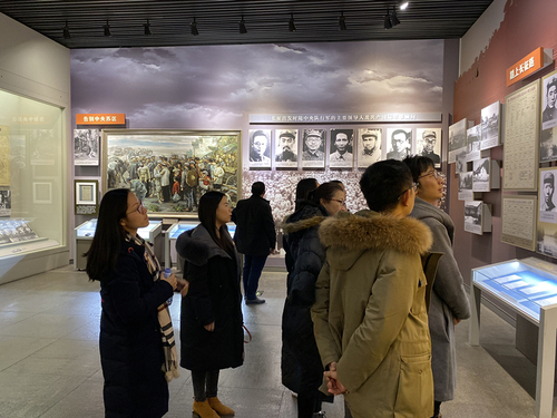 在遵义会议纪念馆,支部党员一起重温了中国革命根据地第五次反围剿失败后,中共中央和中央红军被迫撤出中央苏区,实行战略大转移,进行长征期间所历经的血战湘江、飞渡乌江天险、召开遵义会议、四渡赤水出奇兵、巧渡金沙江、爬雪山、过草地、最终到达陕北革命根据地,最终取得长征胜利的伟大壮举。