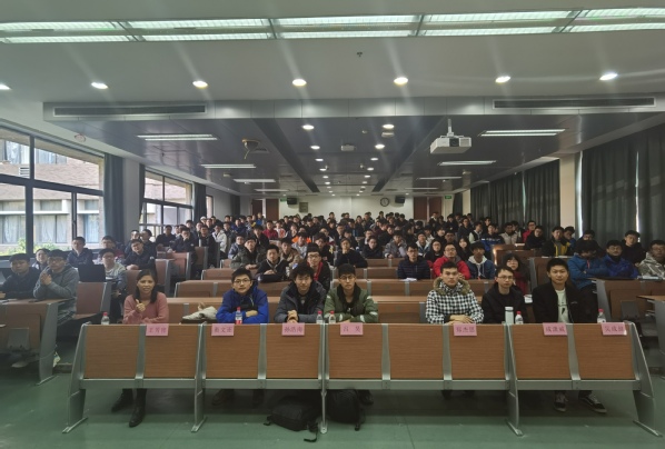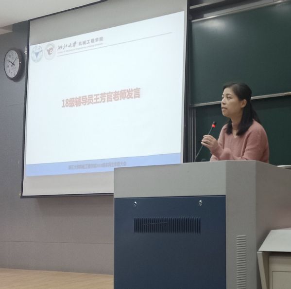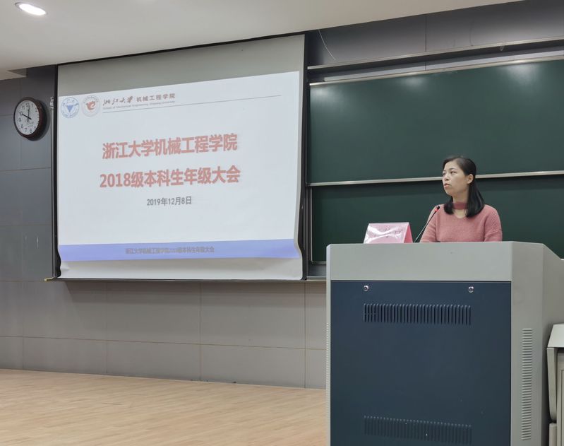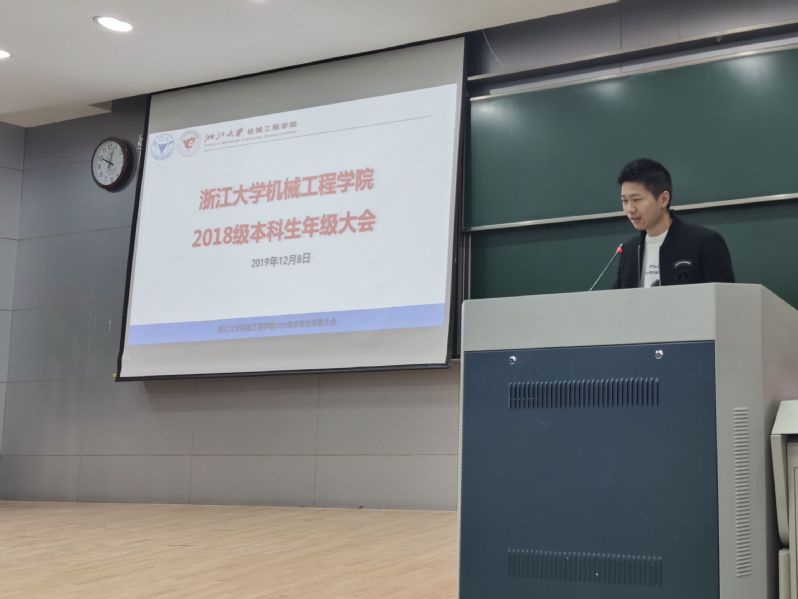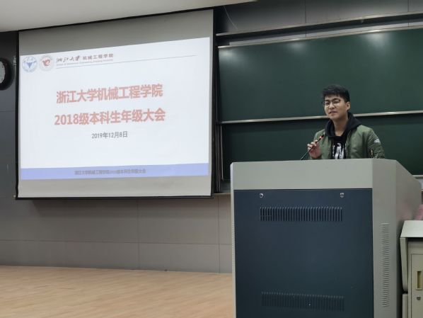 “人生道路上,重要的不是你现在所处的位置,而是你迈出下一步的方向。”12月8日周日上午10点,机械工程学院2018级本科生年级大会在紫金港校区西2-209教室顺利召开。学院为了帮助18级同学分析近期学习情况并对未来有更清楚的规划,特地邀请了16级优秀学长衡文正、成潇威、郑杰思给同学们带来关于出国、竞赛和保研等方面的经验分享,同时还邀请了学院学生会主席孙浩南学长为大家讲解实验室直通车项目。本次年级大会由18级辅导员王芳官老师主持,兼职辅导员吴成健、吕昊到场参会。机械工程学院18级全体本科生到场参加会议,认真听取了老师和学长们的分析和指导。