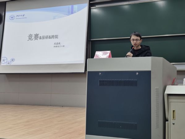 郑杰思学长向各位同学介绍了本校保研的工作程序和实施细则,并结合自己保研的实际经历以及自己在大二大三过程中的转变,希望同学们关注学院通知,积极联系导师,并以积极向上的态度对待学习!
