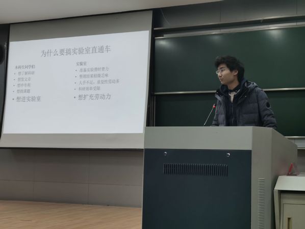 此后,孙浩南学长为大家讲解了学生会的实验室直通车项目,包括项目的运转方式和报名表的填写。学长鼓励大家尽早进入实验室,为今后的学术科研打下基础!