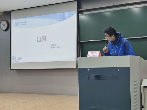 随后,衡文正学长向大家做了关于出国的经验分享,对出国的相关条件进行分析,包括学术联系、学业成绩和标化英语等,并鼓励大家为自己想要的结果付出相应的时间精力。
