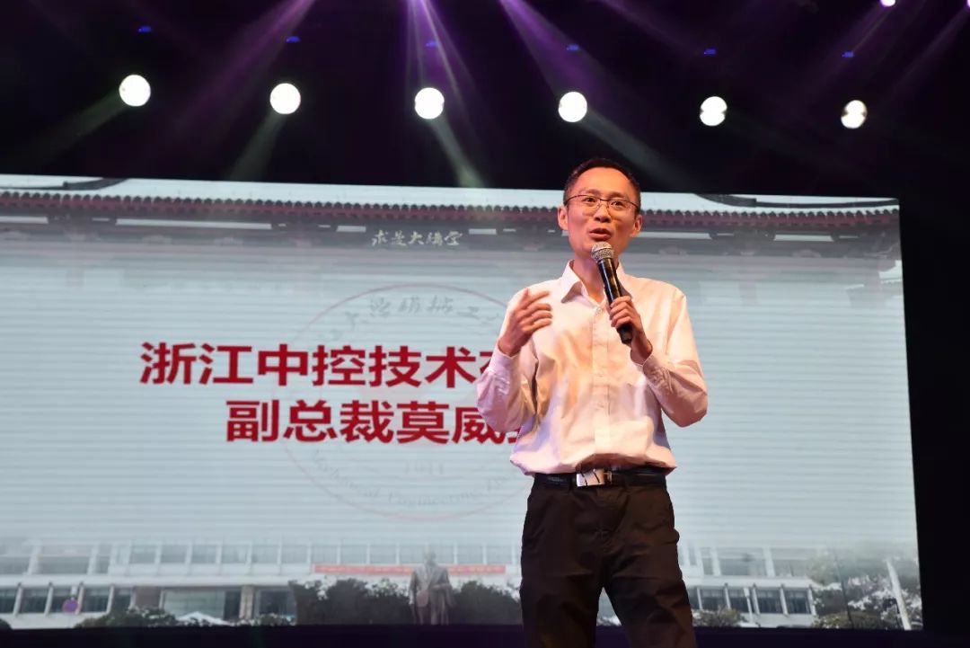 闭幕式最后,作为机械工程学院毕业设计节的赞助商,浙江中控技术股份有限公司技术副总裁莫威先生做精彩发言。他表示本次与机械学院的合作是一次成功的尝试,“中控杯”本科毕业设计节的成功举办,有利于提升机械工程学院本科毕业设计质量,促进学生将所学的工程知识应用于创新实践,跨学科交叉融合,以解决生产生活实际问题。他表示,希望未来与机械学院紧密合作,多做类似创新与尝试。