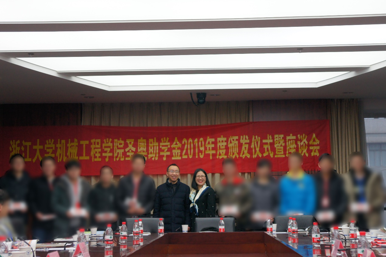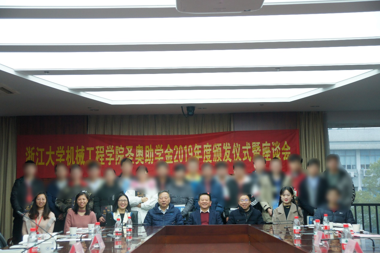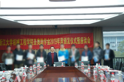 2020年1月3日上午,浙江大学机械工程学院2019年度圣奥助学金颁发仪式暨座谈会在玉泉校区智泉大楼B304会议室举行。与会嘉宾有浙江圣奥慈善基金会会长、浙江大学校友郑明治先生,浙江大学发展委员会副主席、党委原常务副书记陈子辰老师,以及浙江圣奥慈善基金会秘书长杨新妃女士、办公室副主任翁颖女士,机械工程学院副院长刘振宇老师、团委书记王芳官老师、团委副书记金娟霞老师。会议由王芳官老师主持。
