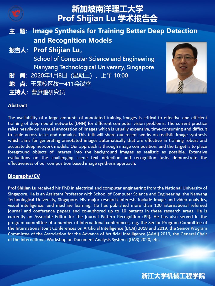 关于新加坡南洋理工大学Prof. Shijian Lu学术报告会的通知