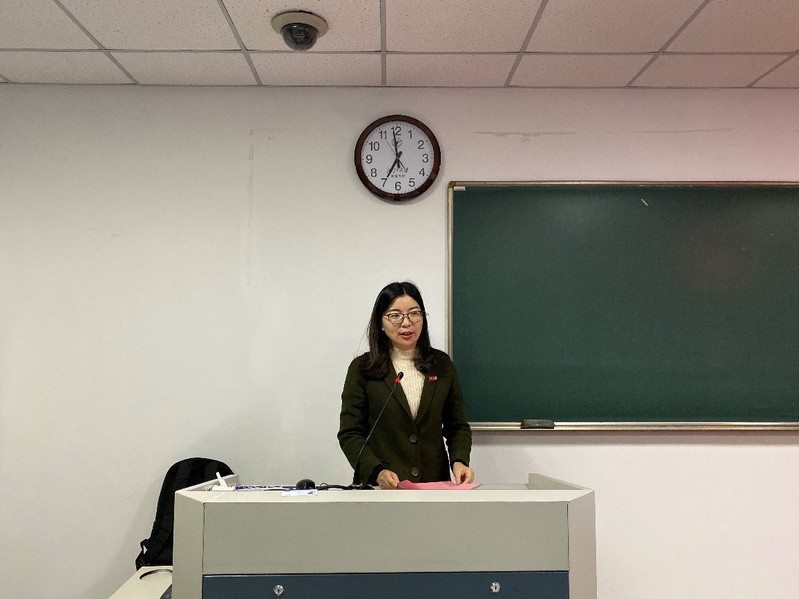 在合唱“中国共青团团歌”后,机械学院党委副书记项淑芳老师为活动致辞。项老师对两位嘉宾老师的到来表示欢迎与感谢,对当晚的团课表示期盼,并对同学们提出了要求。