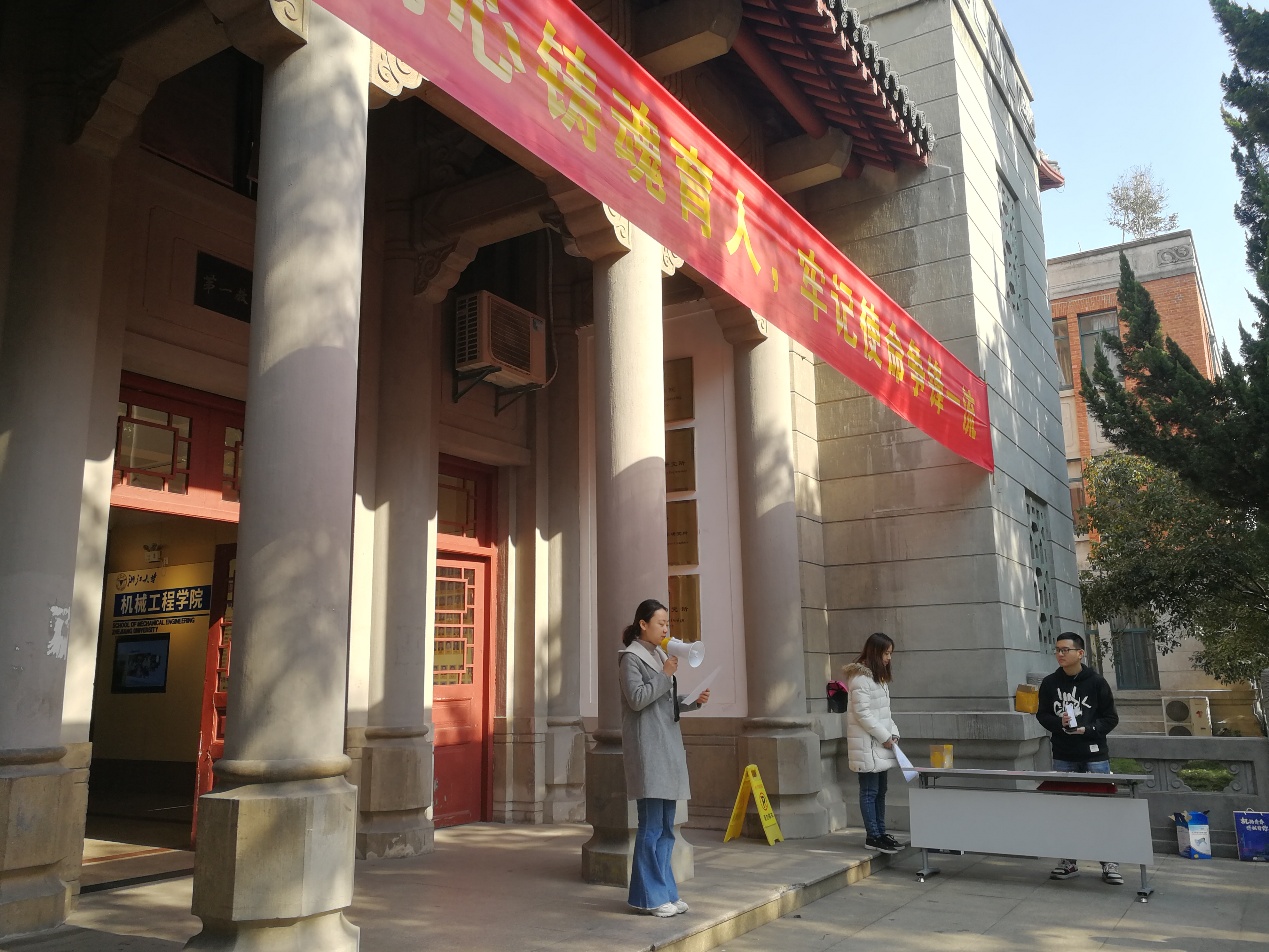 12月08日下午13:00整,机械工程学院一二·九师生毅行活动启动仪式在玉泉校区第一教学楼门前举行,机械工程学院团委副书记张瑜彬老师参与了本次启动仪式。