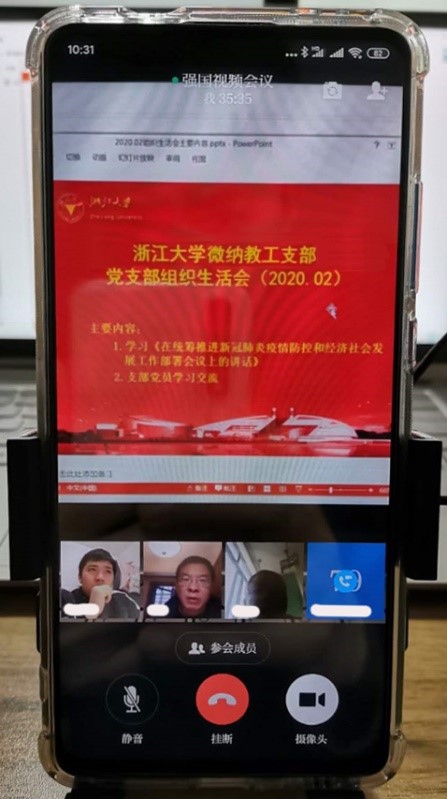 牵动全国的新冠肺炎疫情防控期间,在无法返校开展工作的情况下,微纳所全体党员不忘初心、牢记使命,积极通过“互联网+”的形式持续开展教学和科研工作,实现了“停课不停学、开学不返校”。为确保党内组织生活规范化、常态化,微纳所教工支部积极适应局势发展,非常时期也不懈学习,2月27日上午,借用“学习强国APP”提供的视频会议平台开启了“云端”组织生活新模式。