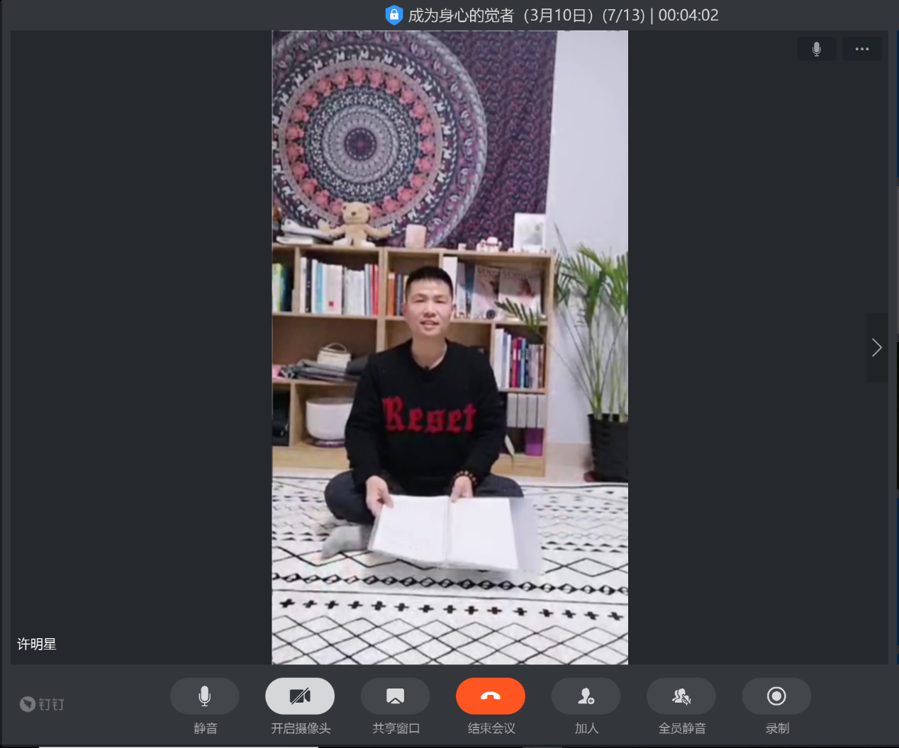 3月10日、3月11日晚19:30-20:30,暖心战“疫”运动与正念冥想工作坊顺利开展。工作坊特别邀请资深瑜伽教师许老师通过钉钉直播讲授疫情期间如何在家通过运动方式调整情绪,以积极平和心态投入到学习工作当中去。培训由张瑜彬老师主持。
