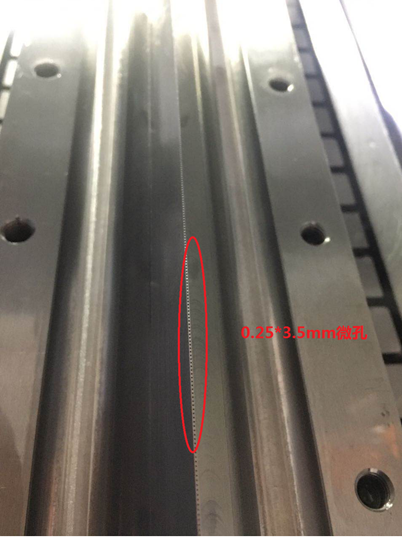 本次在工程训练中心试制的零件其材料分为W1.2344模具钢及S136不锈钢两种材料,材料硬度一般在HRC32-36之间,部分材料硬度达到HRC42以上。在上述苛刻条件下,最终需要实现在600mm*0.6mm的平面上均匀加工901个φ0.25mm小孔,孔深为3.2mm,要求901孔连续加工中间不能有断刀。