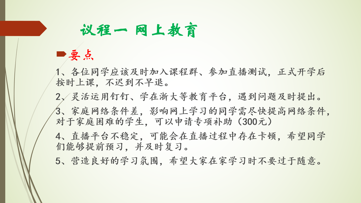 首先,班长张玉城就网上教育进行了分享,提醒大家准时参与直播学习,并帮助大家解答关于直播的疑问,解决了同学们存在的问题。