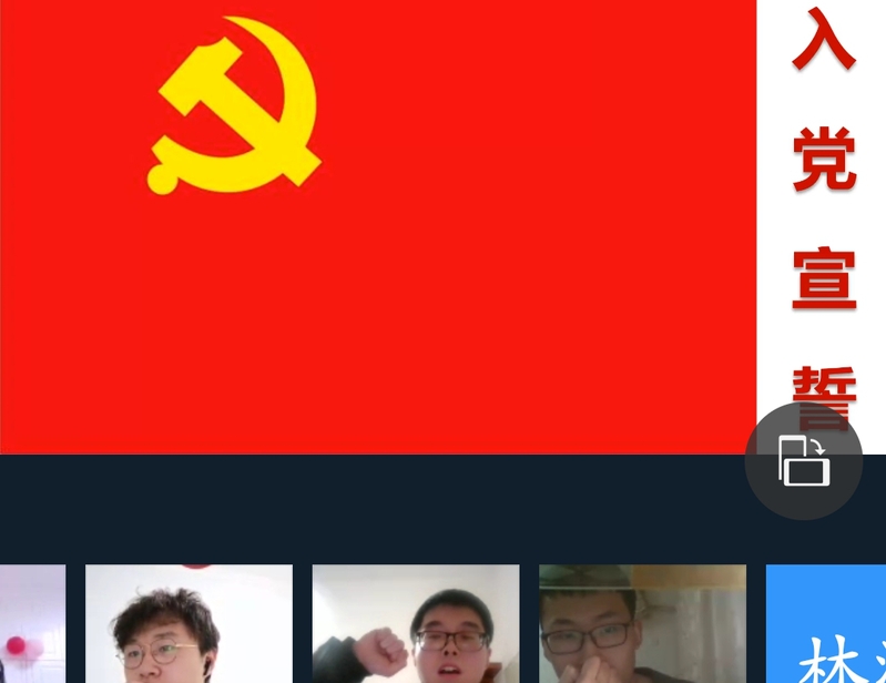 第三项,入党宣誓。在支部副书记陈熠钧同志的带领下,新发展的预备党员在线上做入党宣誓。
