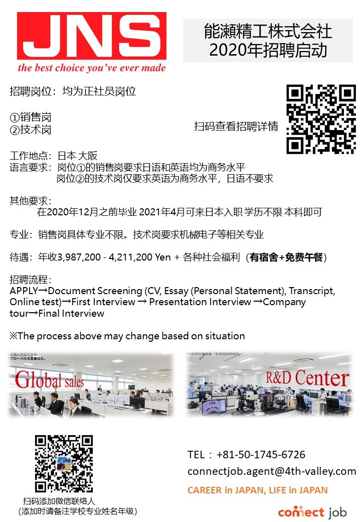 其他要求:能在2020年12月之前毕业 2021年4月来日本入职 学历本科