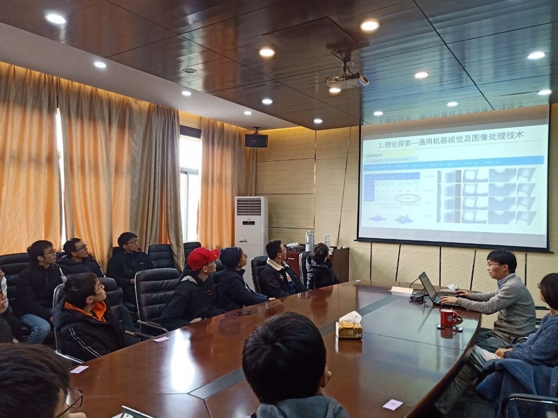 下午,我们从紫金港校区坐校车大巴出发来到了玉泉校区,这里是浙江大学机械学院目前所在地。行程的第一项是前往学院会议室,听取何再兴老师关于实验室研究方向的报告讲话——《视觉智能技术研究探索与实践》。