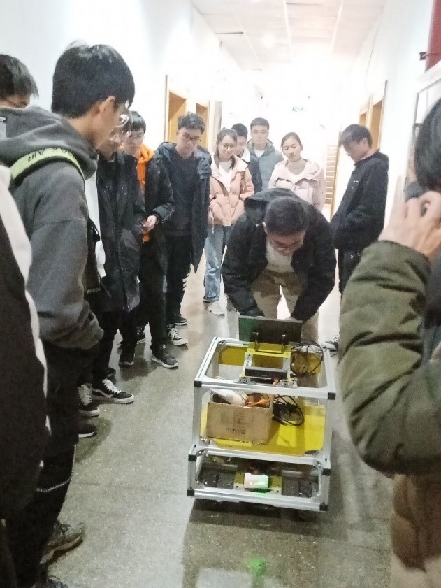 学长们为大家一一展示了自己负责的项目,都是和建模、获取视觉有关的研究。在交流提问环节,学长介绍了这些设备的研究目的、过程、功能,并向大家分享了自己的学习研究经历。