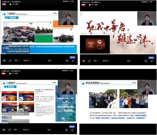 浙江大学在“为国育人,为党育才”的方针指引下,始终坚持引导学生献身军工,长期以来向国防军工行业输送了大批优秀毕业生。疫情当下,为满足我校毕业生就业需求和军工建设人才需求,加大向国防行业的输送力度,搭建高端国防就业平台,给2021届毕业生提供更多就业机会,2020年4月24日(周五)下午14:00,由浙江大学就业指导与服务中心主办,浙江大学信电学院、机械学院、光电学院、航空航天学院承办的“走进航天科工二院”云端报告会在钉钉APP顺利举行,近400位同学通过直播的形式收看了本次报告会。
